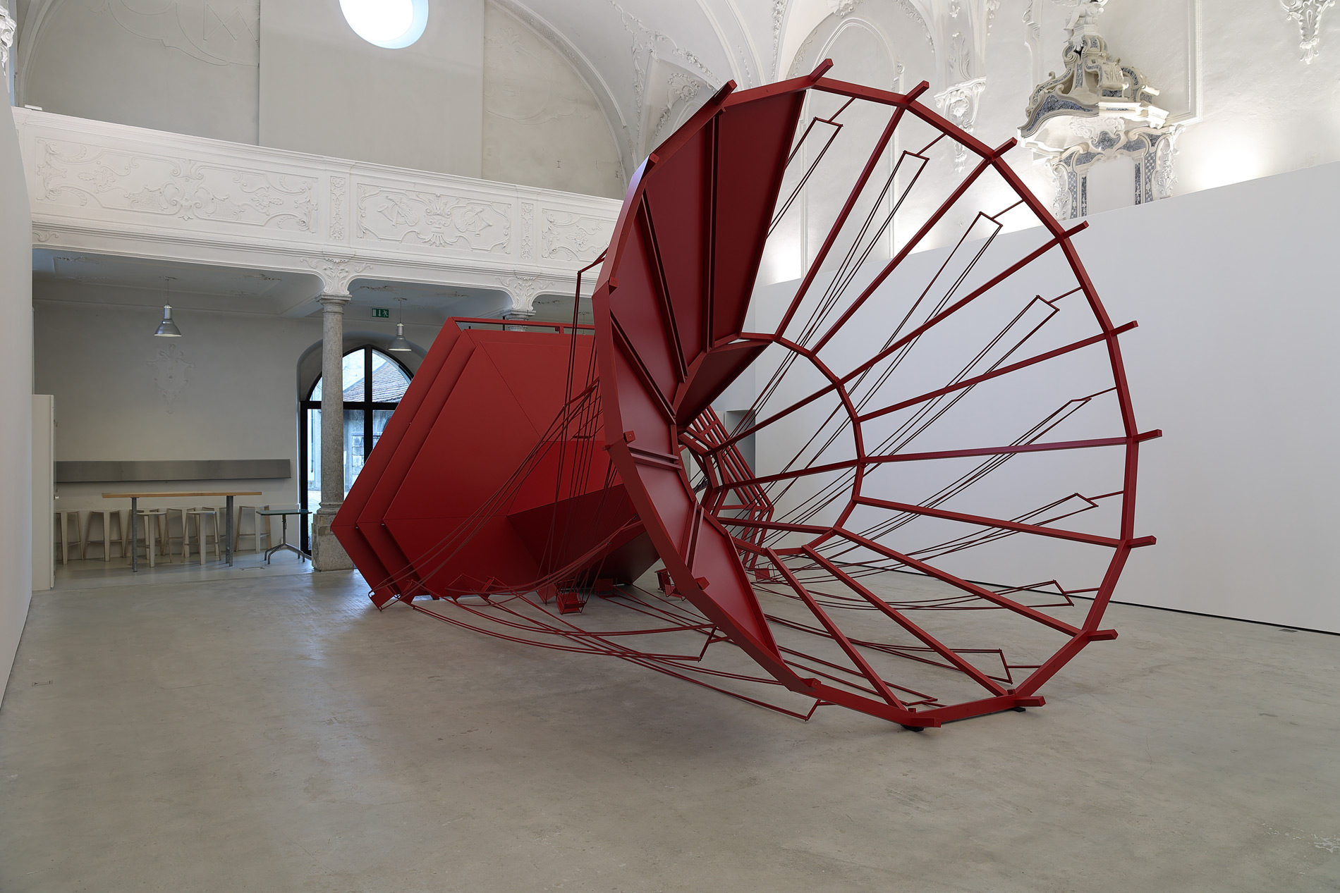 Bei mechanischer Unstabilität crasht das Gefährt, es groundet. So sehen wir es hier vor uns. Zwar glänzend rot lackiert, noch wie neu, aber am Boden liegend. Sinnbildlich für unsere in jüngster Vergangenheit erlebte Zeit. Sinnbildlich für unsere Gesellschaft. Wir geniessen das Schweben in der Zeit, das unermüdliche Kreisen um unser eigenes Zentrum herum. Das Vertrauen in das immer wiederkehrende Gleiche.